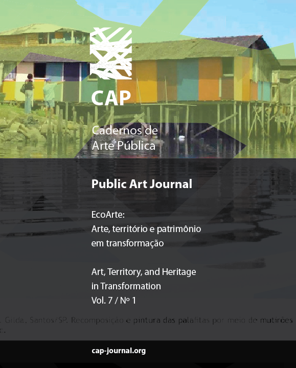 Vol. 6 N.º 2 (2024)Mesas-redondas/painéis temáticos estabeleceram diálogos entre contextos locais e extra-locais, destacando zonas de contato, aproximações, complementaridades e fricções entre os continentes latino-americano, africano e europeu. Assim, ao unir o norte e o sul globais, o projeto propõe repensar, por meio de linguagens, investigações e práticas artísticas, presentes e futuros diversos, ecocêntricos e mais-que-humanos, com base em uma sensibilidade que inclui a ideia do procomum. Pesquisadores, artistas, arquitetos, urbanistas, historiadores e antropólogos foram convidados a se inscrever e participar deste debate e exposição de arte. Os resultados dessas reflexões científico-culturais e geopoéticas estão compilados aqui na publicação científica internacional CAP – Cadernos de Arte Pública.